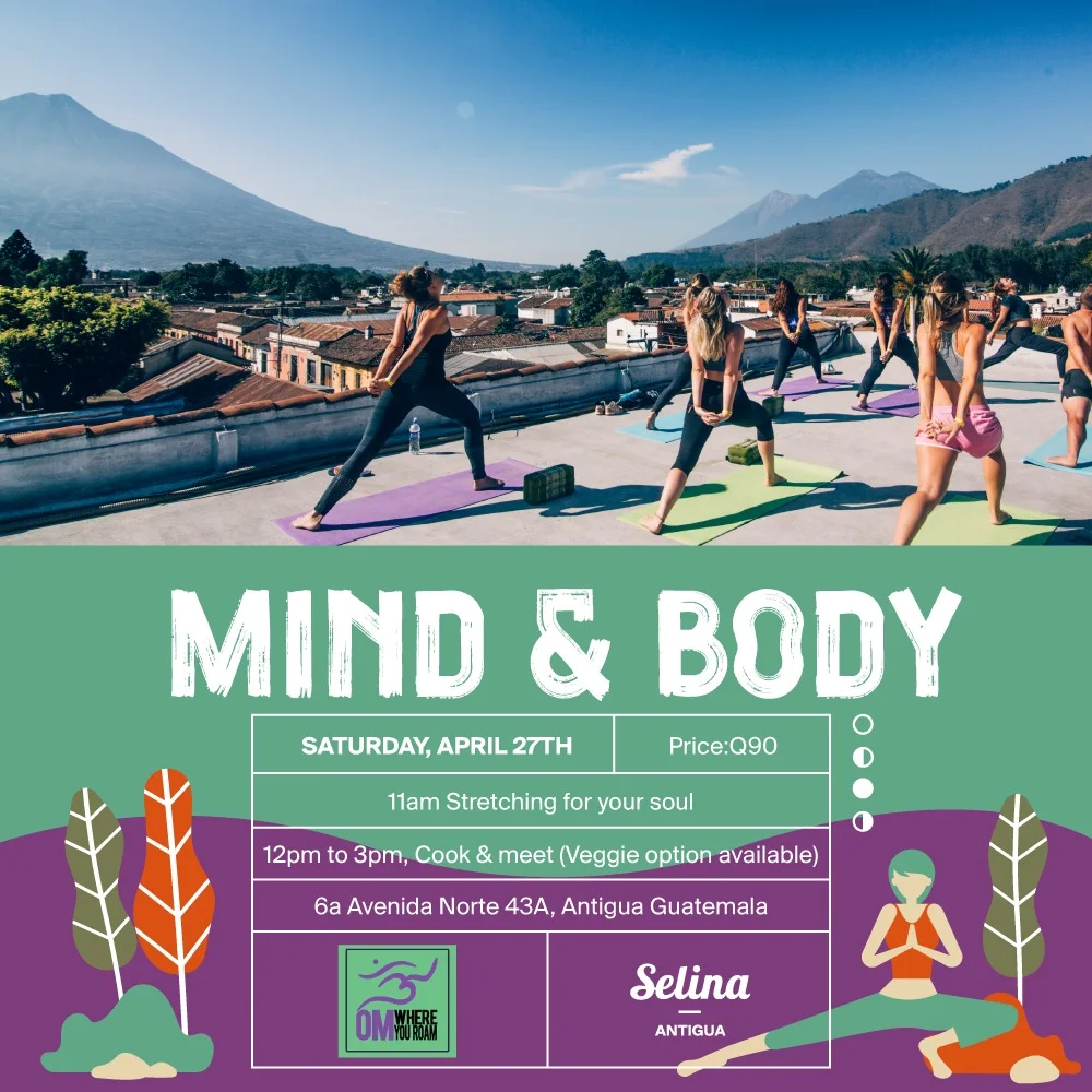 Om Where You Roam and Selina present The Yummy Stretch/Mind & Body! Where the food is delicious and the stretch is nutritious.
